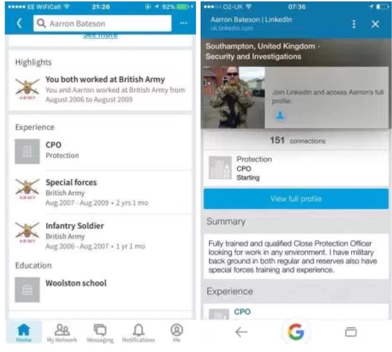 Aarron came on to announce to every man and his dog in the world of social media that he were a newly qualified Close Protection Officer and had Special Forces training / Experience. Spent a year in the TA infantry then up graded to the Special Forces, but did not hang around in the forces for to long.
