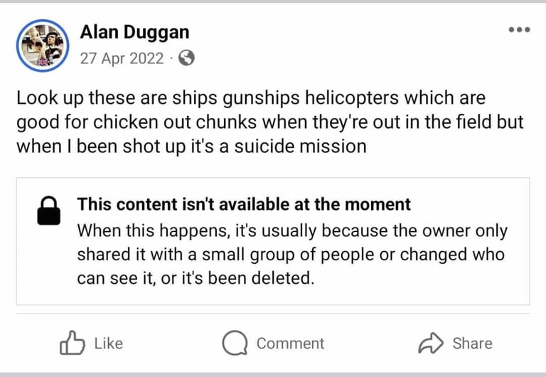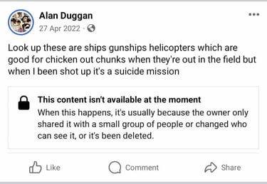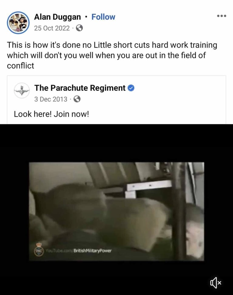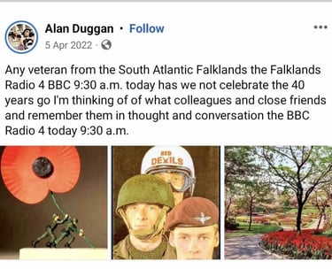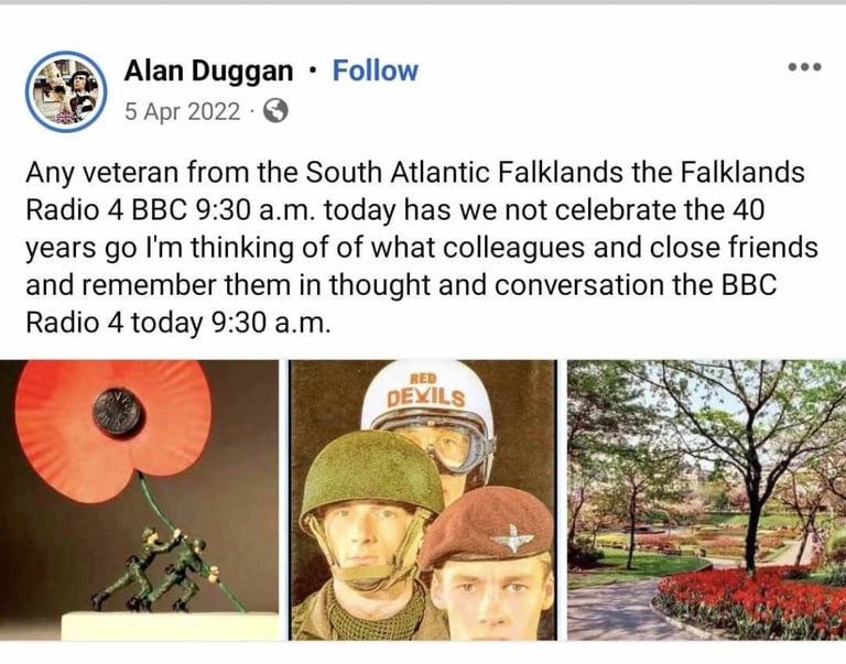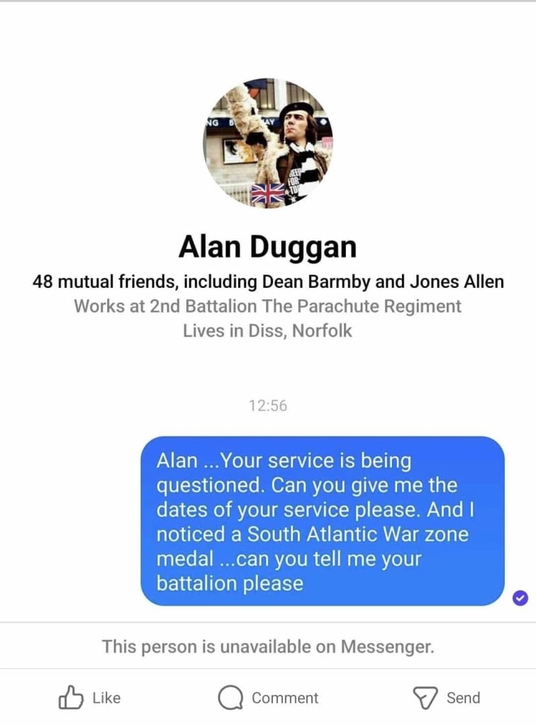 Now for a former Sgt in 2 Para you would have thought he would have known the correct order, but as our investigation has revealed. Duggan had never served in the Parachute Regiment or saw active service in the Falklands.