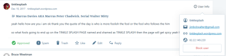 Upon reviewing the grammar on the review page, there are also some similarities to the ramblings on the ‘Tinklesplash’ WordPress page.
