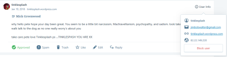 As with most walts and bloaters we have exposed, they like to desperately have the last word. It’s some sort of walting comfort blanket for their cumpery.