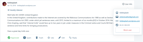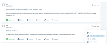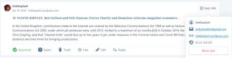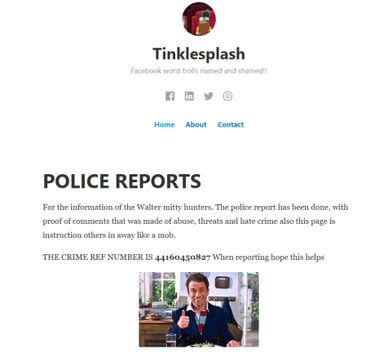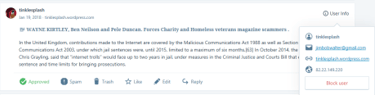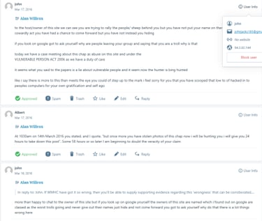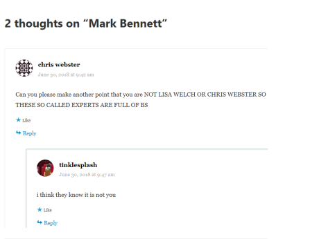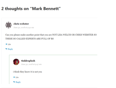 It became obvious Webster was in contact with Willcox and feeding him in order to smear those who publicly exposed him. The only Comment ever allowed on Tinklesplash.