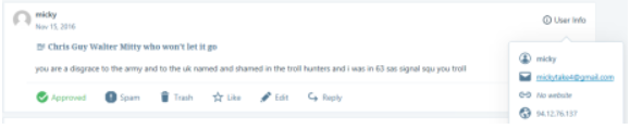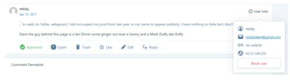 Furthermore, as it can be seen in the IP Address attachment, in Jun 16, the IP address 5.67.153.0 was used to post using the mickytake4 email address, which was apparently done from Nottingham/Alfreton, but as we can see Willcox likes to travel and post about it.