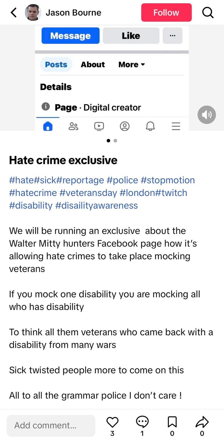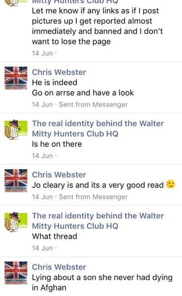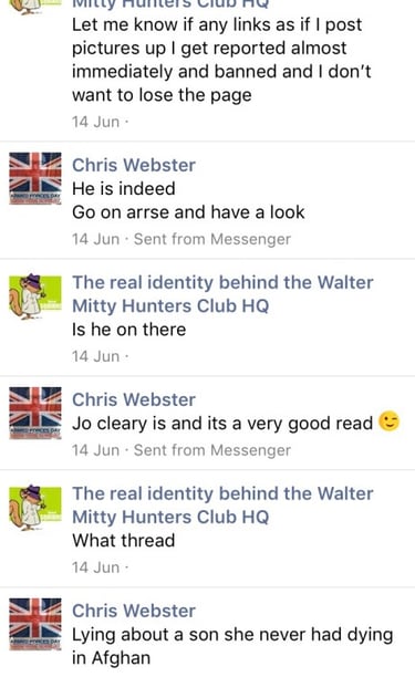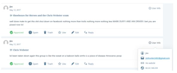 But is does not stop there. He was used by another exposed Walter Mitty and charity con man, in the form of Chris Webster to spread his accusation and hate via proxy.
