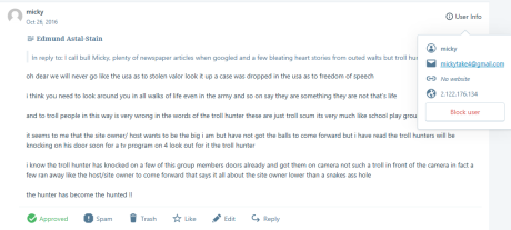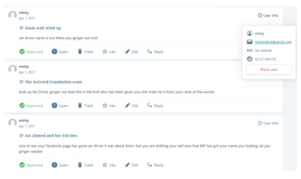 Willcox did not disappoint. Firstly admitting he was behind the trolling, then doing a runner with his final good bye post to his imaginary members. How sad!