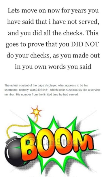 The actual content of the page displayed what appears to be his username, namely ‘alan24924481’ which looks suspiciously like a service number. His number from the limited time he had served.