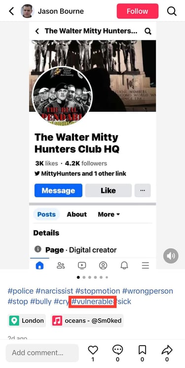 After reading all of the above about Tinklesplash and his MO, you may have noticed some similarities to his recent profile (Mike Hunter) and his new platform of choice Tiktok.