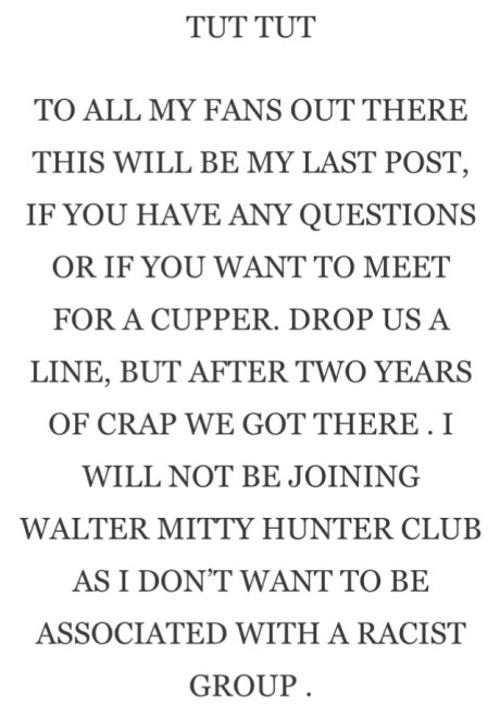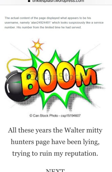 These pages all ran along the same lines, claiming they are going to expose the admin of those nasty Walter Mitty hunters who ruined their Walting ways.