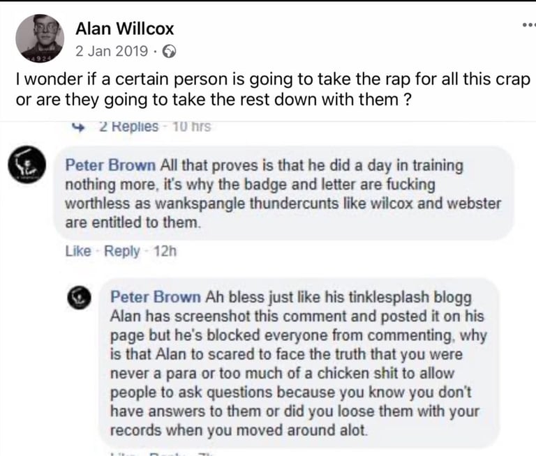 Only one problem the Crime Ref number was issued in 2016 around the same time we exposed Willcox and from Hampshire. Willcox's partner, Alison, who was desperate to identify the admin had used this number when she attempted to threaten the page with the police unless we took his outing down.