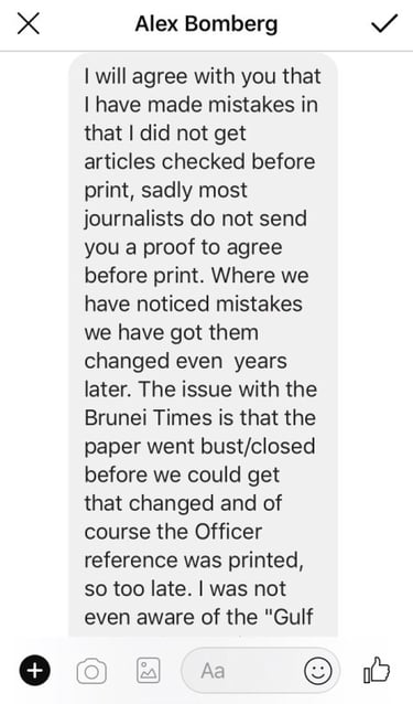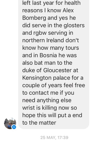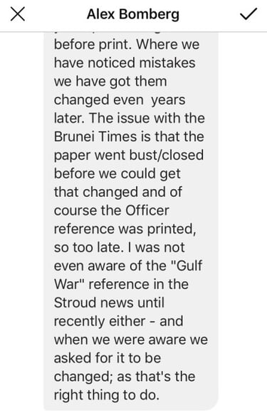 It may seem a long time ago 2004, but when Alex knew people had caught him out on his bloating lies, Alex in May 2018 quickly contacted the Stroud News & Journal and asked them to remove the claim about him serving in Gulf 1, nearly 14 years after the article was published, you can read for yourself in the email evidence, where the Stroud News & Journal say