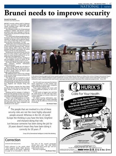 Then During an interview with ‘The Brunei Times’ in November 2013, Alex again is described as ‘…. the former military officer’ and again ‘…The former British Royal Aide’.