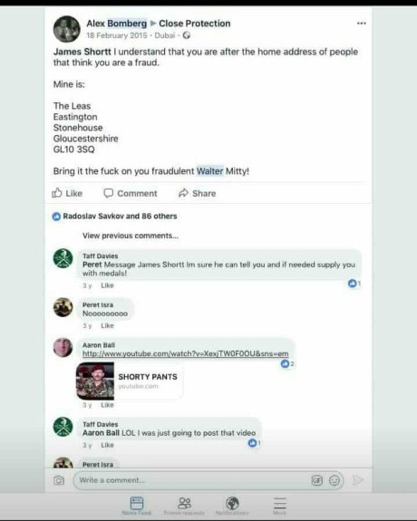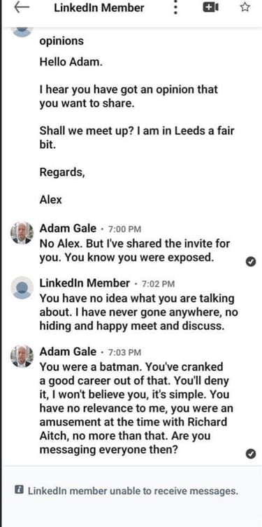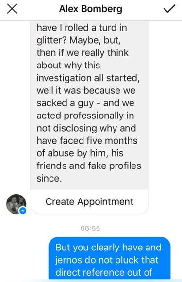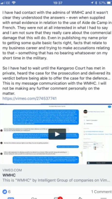 Once he knew we were on to him he started pruning his Facebook page and began asking his mates to stick up for him. He also used the typical threat of legal proceedings. Like we have not had that before ;)