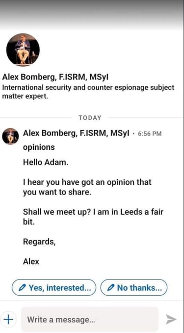 Meet Alex Bomberg who will tell you he was a former ADC to Royalty, an officer and served in the 1st Gulf War amongst other claims.