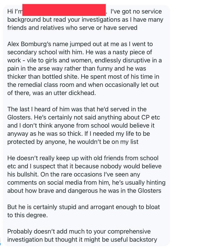 However, we decided to carry out our own investigation searching for other strands of evidence which could link Bomberg to exaggerating his service for gain….. In other words Bloating or Bloatburging!