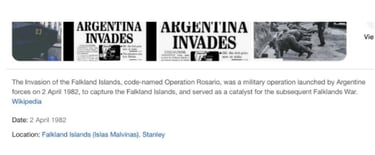 Before we continue further, let’s look at a few Google facts about the Falklands war.