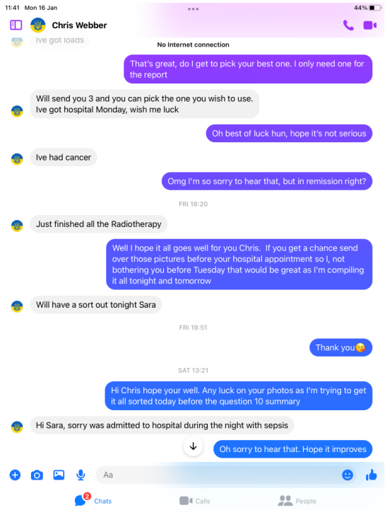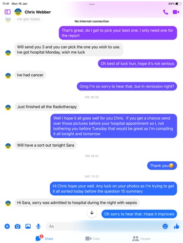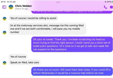 Sting One : Veteran looking for help after seeing the tweet and searching Chris out for advice.