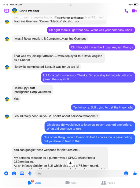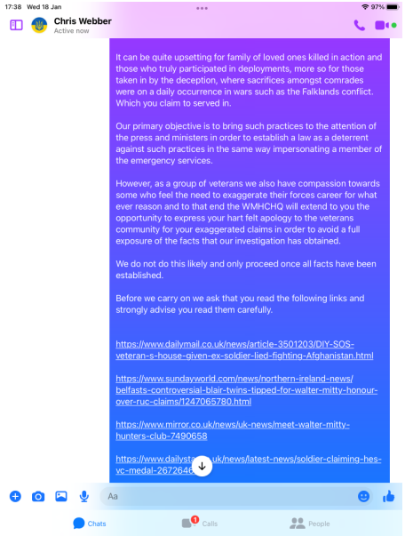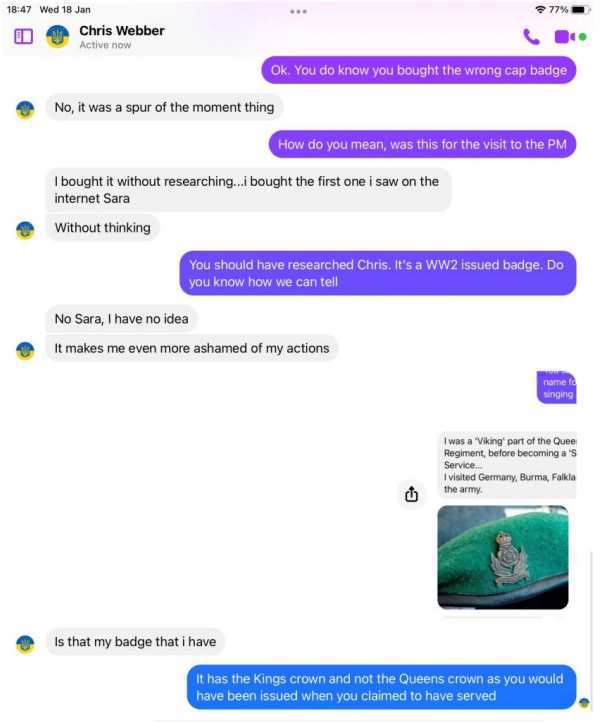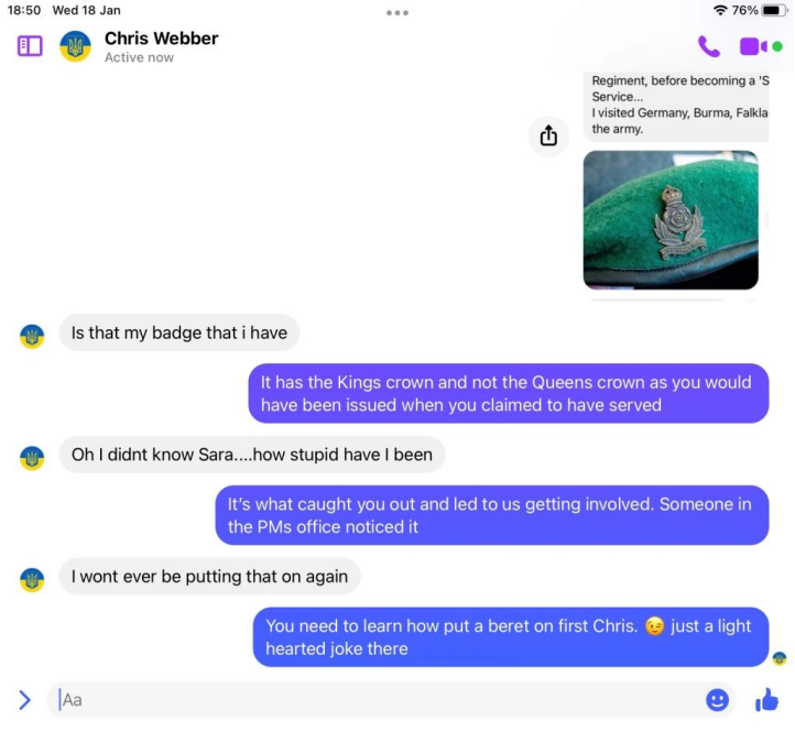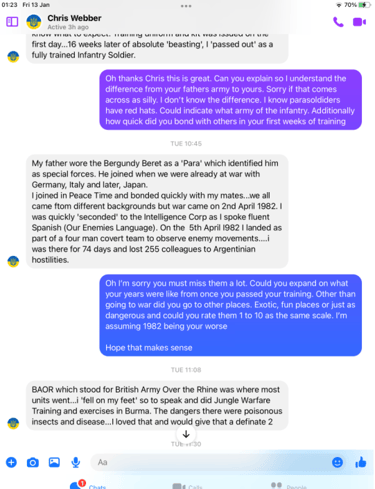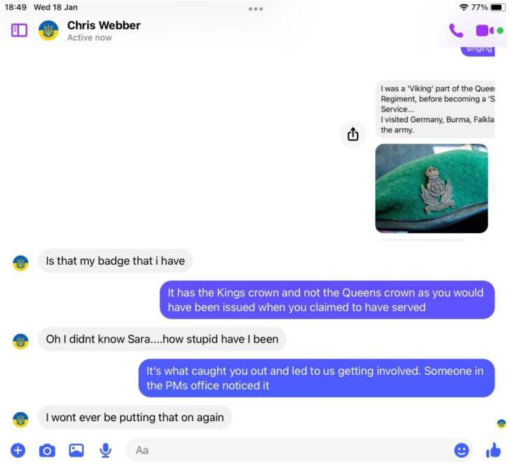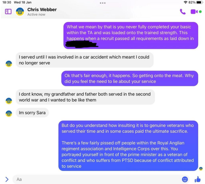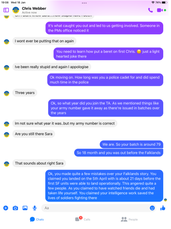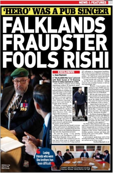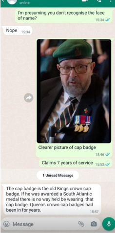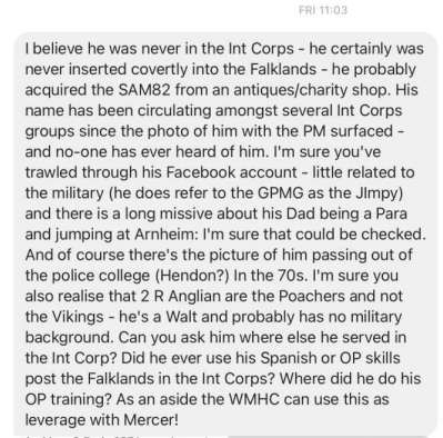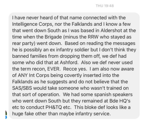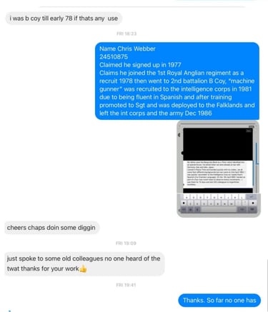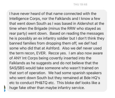 Webbers details and pictures were past on to members of the Intelligence Corps who served in the Falklands war and beyond, former officers, Warrant officers and SNCOs, yet not one recalled his name or recognised him. All ripped his claims apart.
