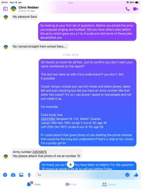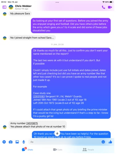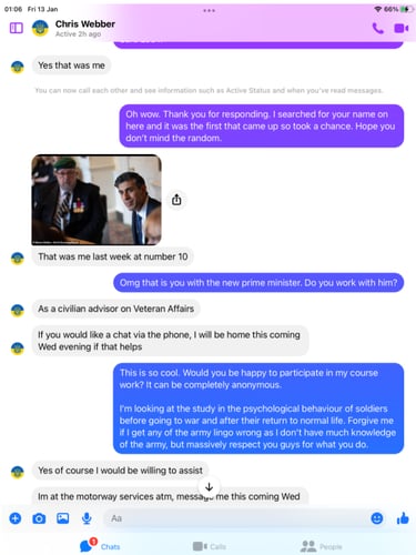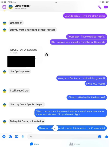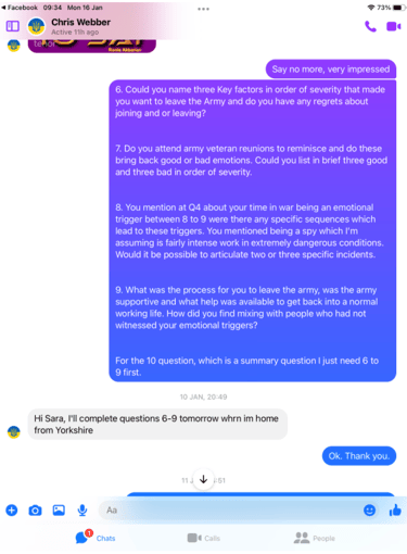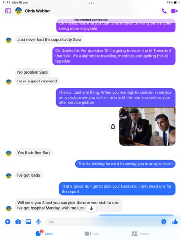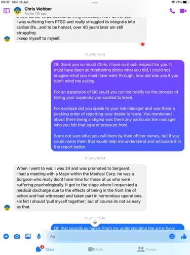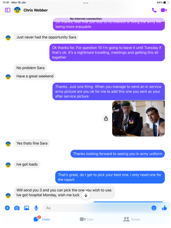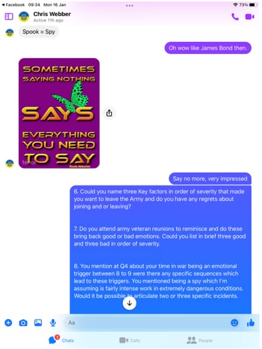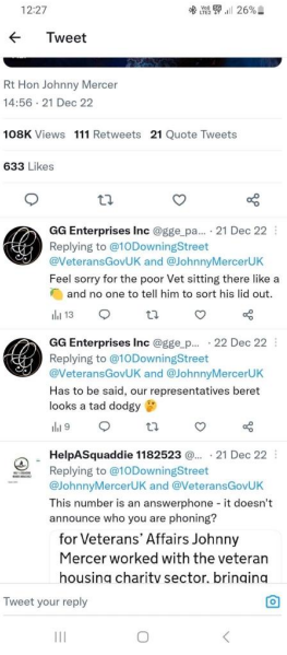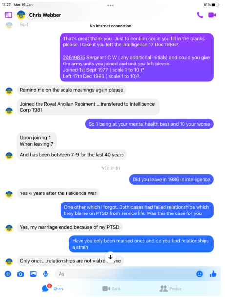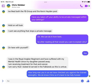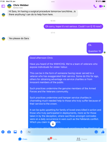 Funny old thing Chris was far more chatty and even claimed he is a Civilian advisor on Veteran Affairs, but it get so much better!