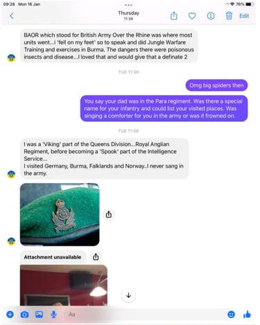We consulted both the 1st and 2nd battalions of the Royal Anglian regiment and in particular 2nd bat B coy, every answer the same, not known and his story is total nonsense.