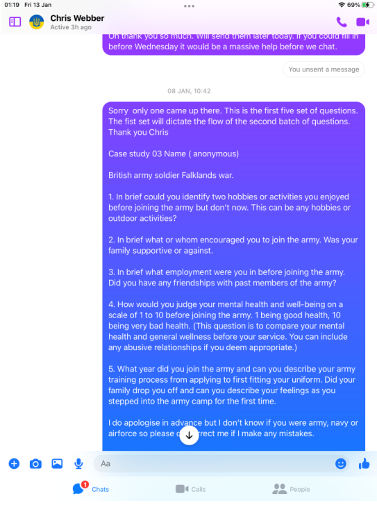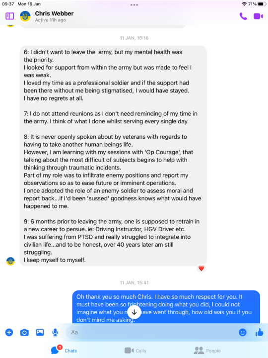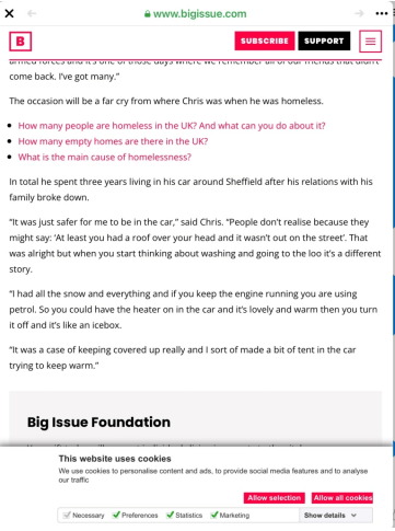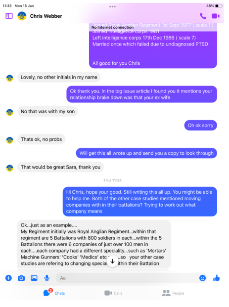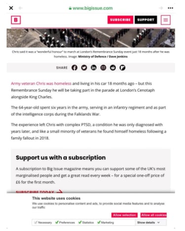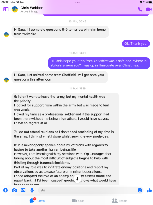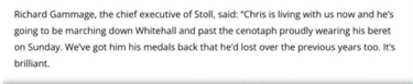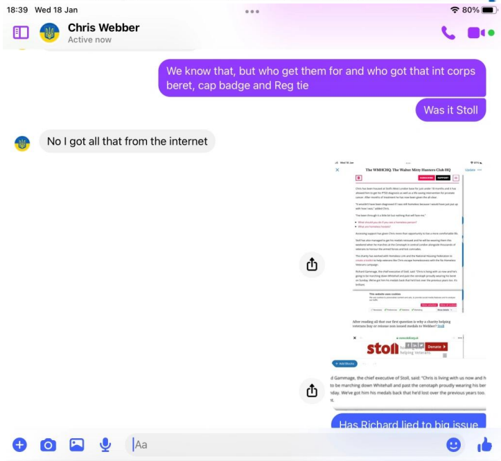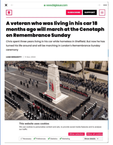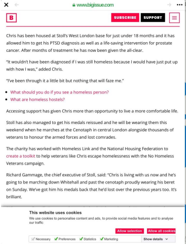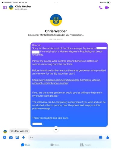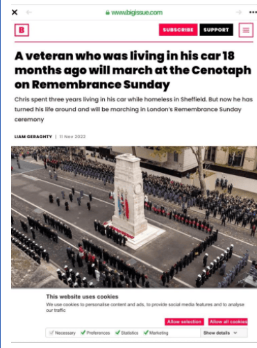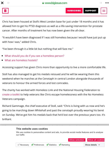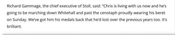 A magazine called the big issue ran an article about Chris Webber and how he came to the attention of a veterans charity called Stoll which helps veterans in need. The big issue