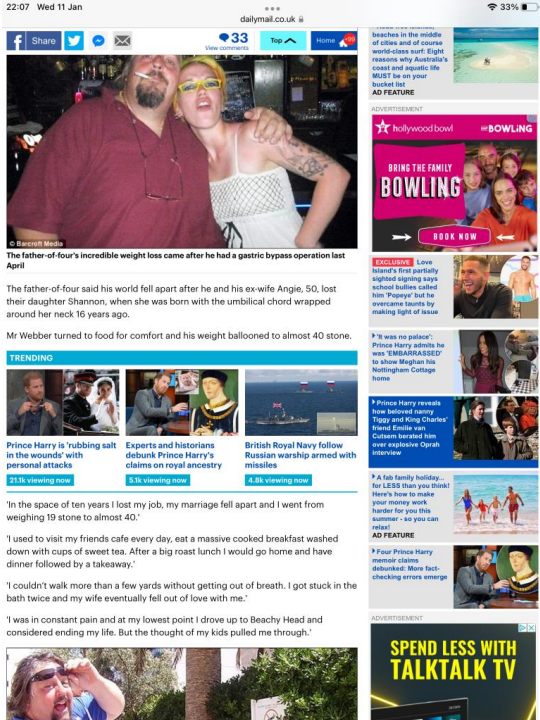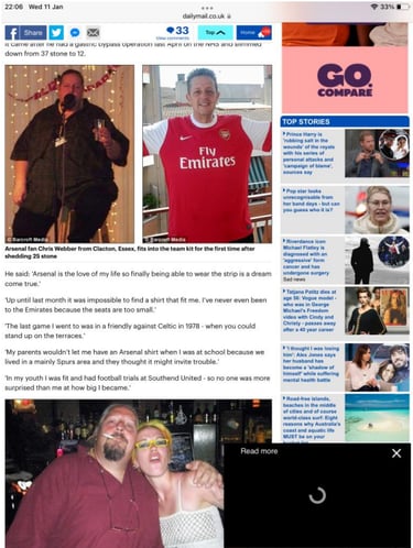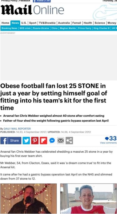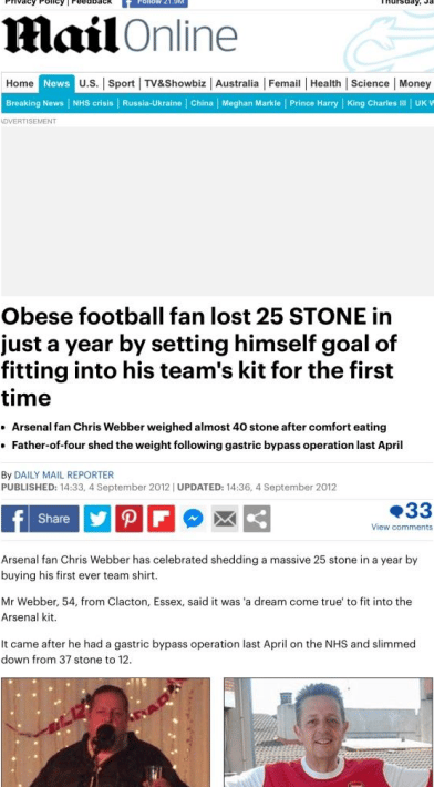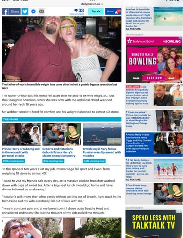 The Mail When Webber gives his story to the papers about his weight loss on the NHS and his struggles, there is no mention of any previous service or PTSD. In fact he claimed very different reasons for his mental health issues.