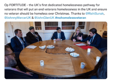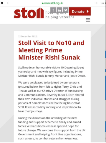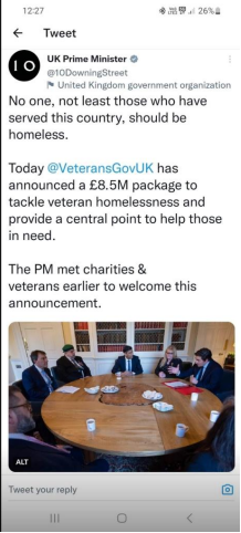 The reason for the meeting was to help the PM understand veterans issues such a PTSD and Homelessness amongst the veterans community.