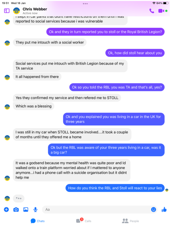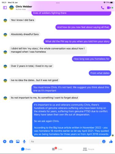 There’s hundreds of homeless ex forces who served a year to 22 years, living on the streets with not a pot to piss in. They struggle to get help mainly because of their pride or genuine mental health issues associated to their service, and the real genuine cases find it even harder when blaggers like Webber bluff their case to get a handout simply based on an issued army number for just a few days TA attendance here and there and the ability to look people in the eye and lie.