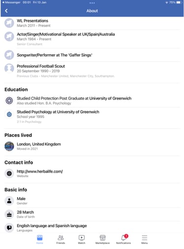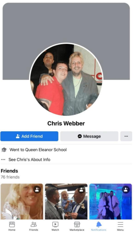 We needed to establish if the webbers were all the same. We noted Webber claimed to be a keen football fan and Arsenal supporter even going to a match against Celtic in 1978, so we searched for key words “Chris Webber-Football-fan-Arsenal” and found two profiles with the same set of pictures.