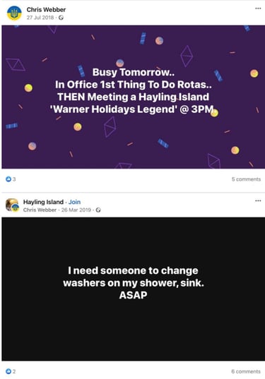We have also showed a few examples of Webbers social media footprint which clearly demonstrates he was not homeless for three years, in fact he was living it up in Spain, and had accommodation in Hayling Ireland 2018 and 2019, Mijas Pueblo 2020 and so on, we could go on, so what can we trust!