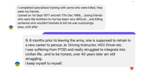 A very strange type of job to take up with PTSD which forced him to leave the army and avoid people….Or was he on resettlement Hi De Di Webber.