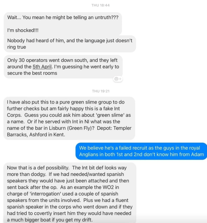 There are still questions over his alleged 18 months with the 5th Battalion The Royal Anglian regiment which is a TA unit and so far, not one person has been able to ID him from that particular unit and time line.