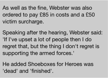 Things got from bad to worse for Webster as he was later fined a second time for racial hate crimes towards a veteran.