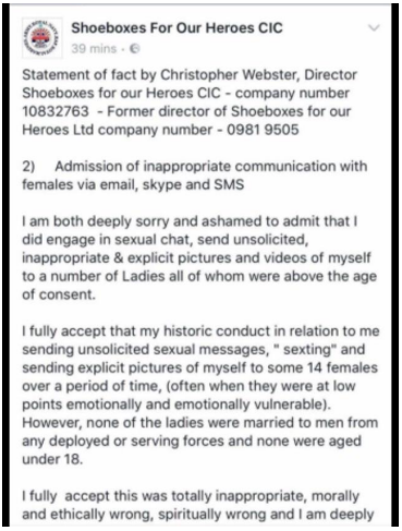 We first exposed the antics of Chris Webster in 2017 or as he became known (Skinflute) Concerned veterans and serving soldiers wife’s first alerted the WMHCHQ to his unsavoury antics a few months previous. So we did our thing.