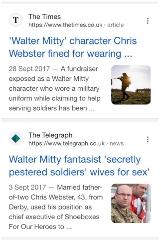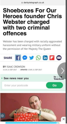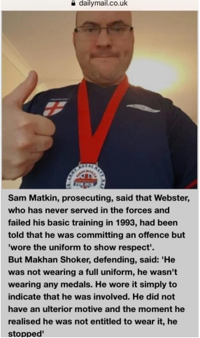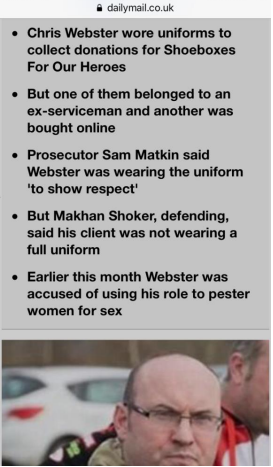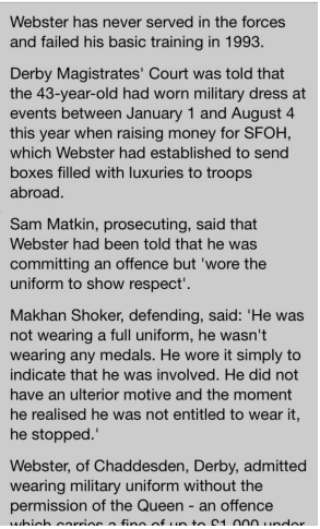 We we soon discovered Chris Webster had never really served, bar a few days in the TA where he had failed basic training then kicked out, yet would be frequently be seen wearing uniform while collecting money.