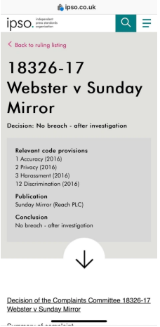 Walts don’t like their lies aired and will try every means possible to hide them. Webster is no exception and attempted to file a complaint with the ipso. It did not go well either.