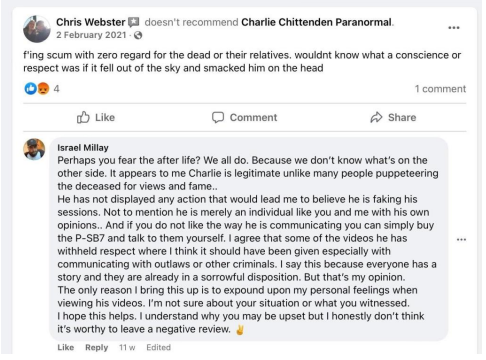 John Harris and his and partner in crime have been jumping from one money making scam to the other. From bluff youtube content scams, which is essentially going to the same old place umpteen times and making out it’s a new location. Where they always manage to find evil spirits using an old 80s broken speak and spell thingy. Harris boasts a huge following, yet on closer inspection most are fake bot profiles to fool vulnerable people into thinking he’s popular and thus credible. The views to his page however just don’t mach up to the following.