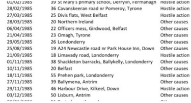 The list of all soldiers who died during 1985 on Op Banner can be found online in official records published by the MOD after a freedom of information request.