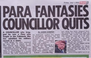 Had King not used the death of a parachute Regiment soldier KIA during the Falklands or the fictional contact in Northern Ireland and subsequent fictional deaths of seven Paratroopers to inflate his ego. We may have allowed his thinly self pitiful apology go to the Vault.