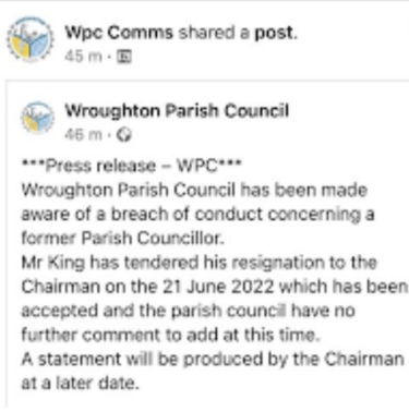 King is a cllr for the Wroughton Parish Council. Which is a very important job and carries a lot of responsibility as King pointed out Feb this year. So before the WOKE brigade start crying how horrible the WMHCHQ are for exposing him with his conditions just remember, He’s obviously deemed fit enough by the council to make such important decisions for his community!