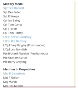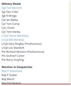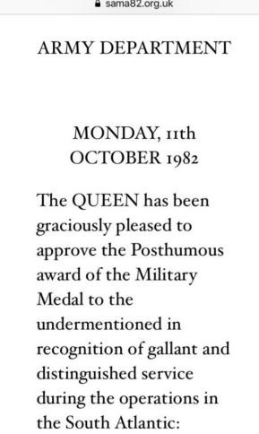 In total, some 71 gallantry awards for actions in the Falklands campaign were made to attached personnel, members of The Parachute Regiment and former members on service with other units and only 14 were awarded the MM and Joshua King is not listed.