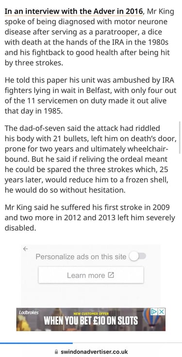 We then turned to his claim of King being involved in an Ambush were several members of the Regiment were KIA in Northern Ireland while serving with 2 Para in 1985. Read Link