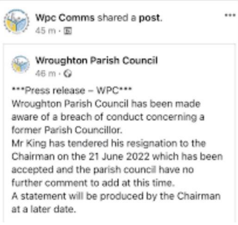 The press soon picked up on the story and the WMHCHQ knew it would only be a matter of time before the real truth was known. We gave King one last chance to rectify the lies he told to the press and for Wroughton Parrish Council to give the honest truth to its constants. But alas. Nothing.