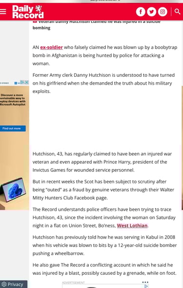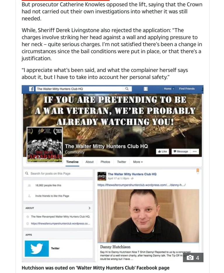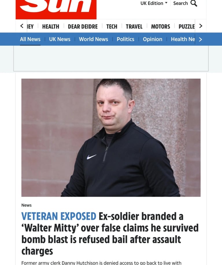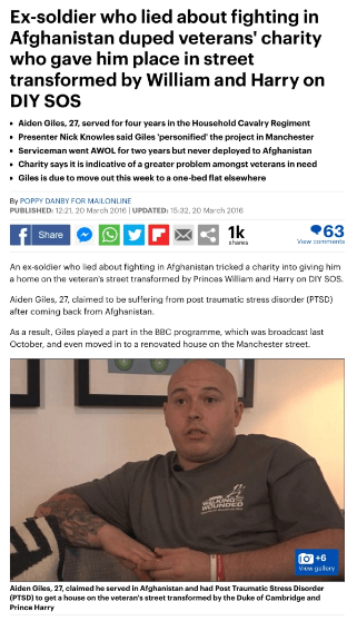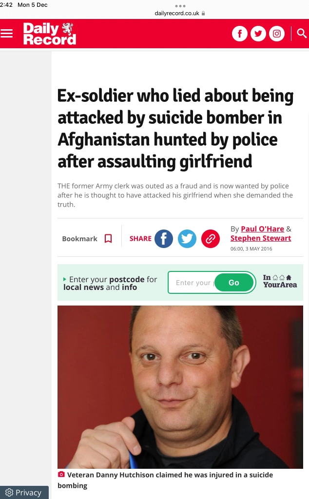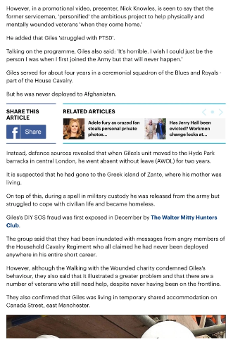 In fact the Mail on Sunday were going to run a story in parallel with us, exposing his lies. Until he used the normal get out of walt jail free card of calling PTSD and the threat of self harm at the last minute.