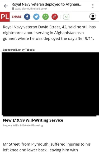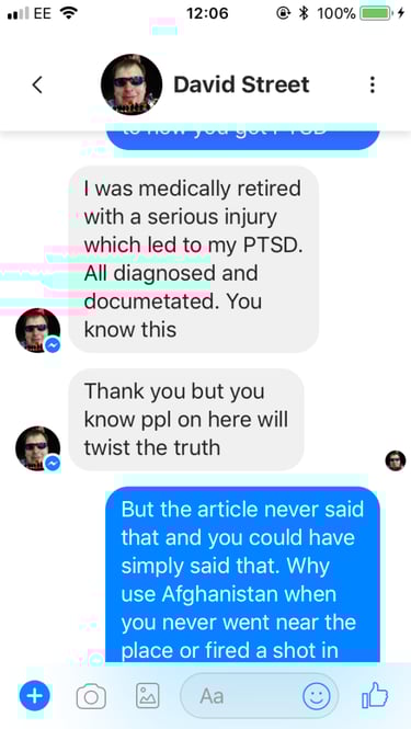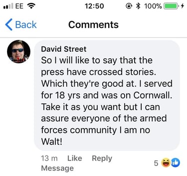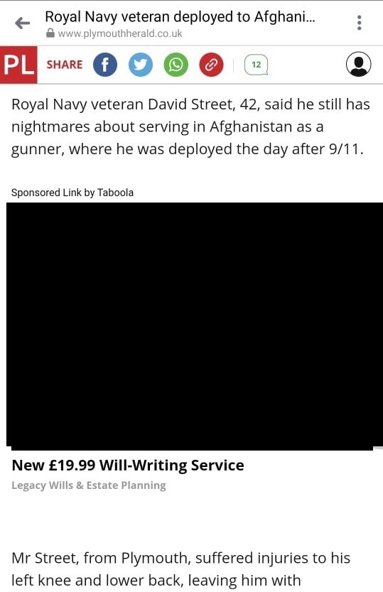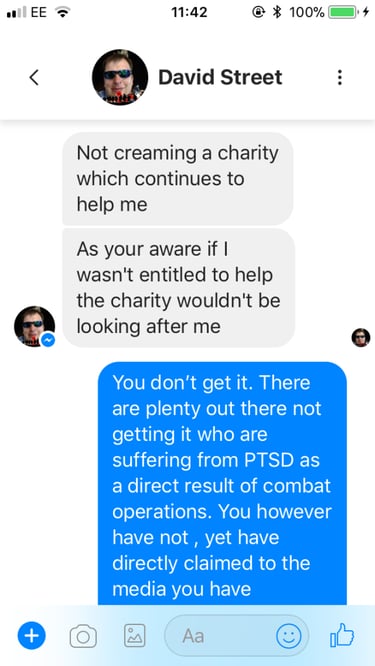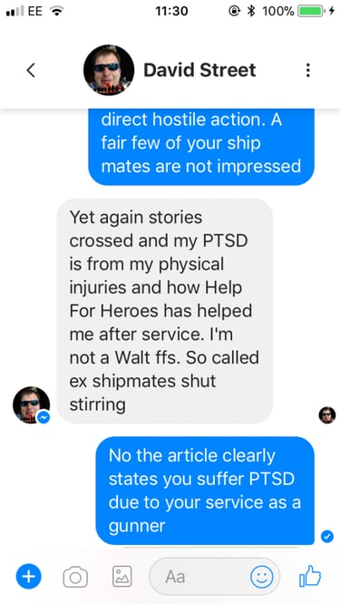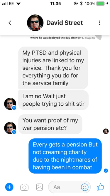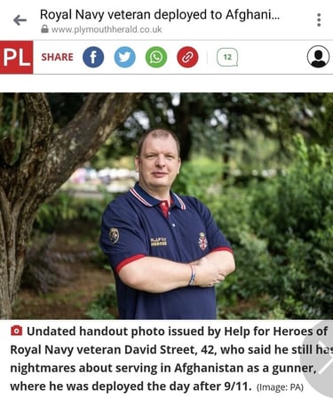 Oh dear. Meet David Street of Plymouth an ex Jack Tar with a tail or two to tell about his horrific time on ship having been deployed to fight after 9/11 and not the first time we have exposed a Bloater who’s taken in Charity organisations who fail to conduct their own due diligence and who are more interested in good publicity.