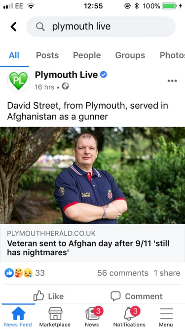 David hit our bloating radar with an almighty PING after featuring in his local rag giving it big licks and shit dits about having terrible nightmares as a gunner where he deployed to Afghanistan and as sure as shit his former ship mates were very quick to point out……The only thing true is that he did serve in the RN but apart from that everything is fabricated!! He was a well known mallingerer and did not deploy to afghan the day after 9/11
