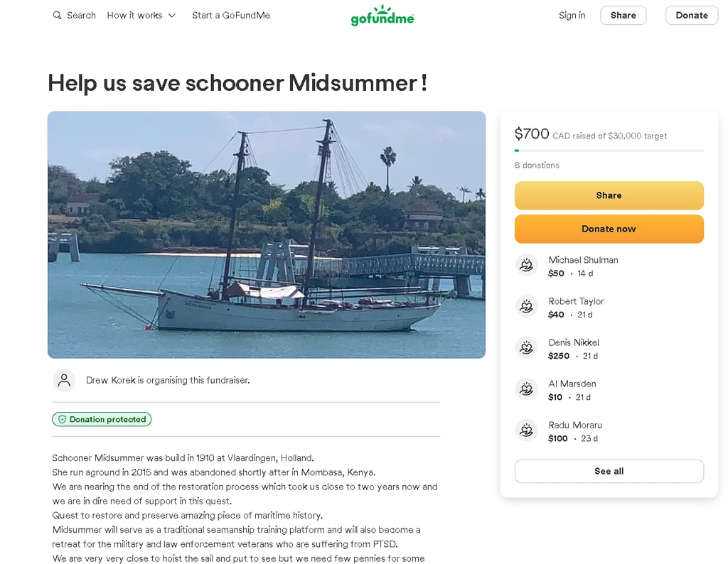 Fundraiser by Drew Korek : Help us save schooner Midsummer ! (gofundme.com)