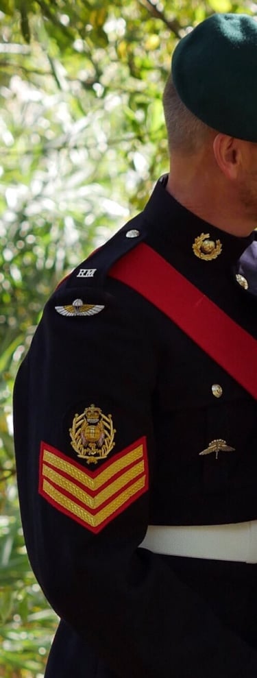PS the gold dagger on his left shoulder denotes the All Arms Commando Course, no RMs wear it on their blues.