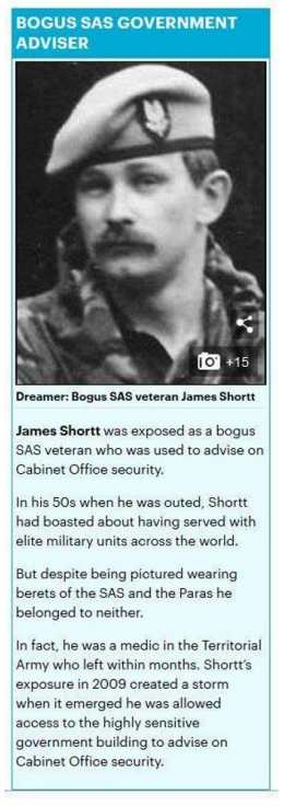 He never attempted any tests and simply self awarded himself qualifications and it’s here where Shortt invented his made up career which he was able for many years to get away with, selling himself and his self taught subject matter expertise to the unknowing who would pay large amounts of dosh to be trained at his International Bodyguard association school of fuckwittery. Even the government were fooled.