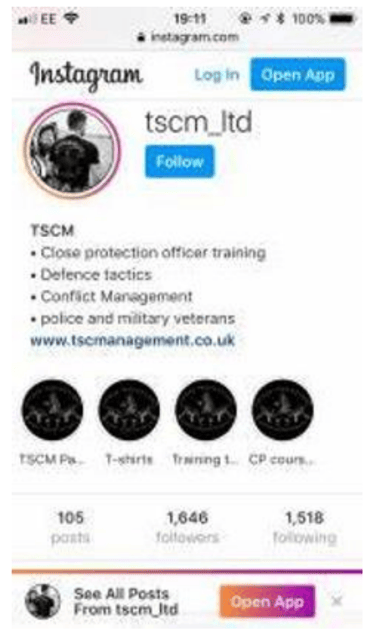 A long established and apparently well qualified exponent of Brazilian Ju-Jitsu, he is a BJJ coach and, with his company TSCM Ltd, he and his former military instructors run, amongst other training, a 14 day Close Protection course.