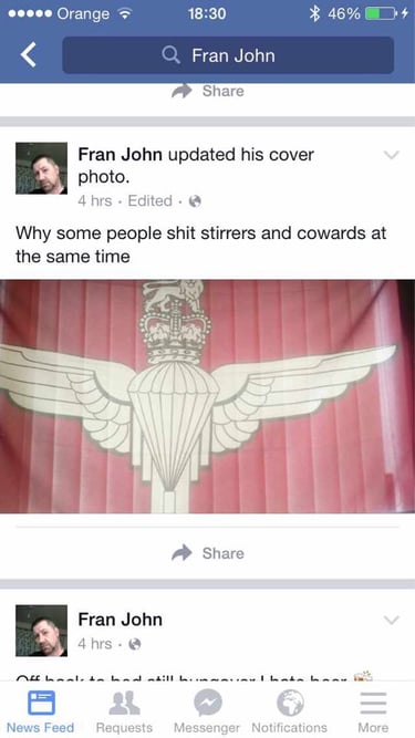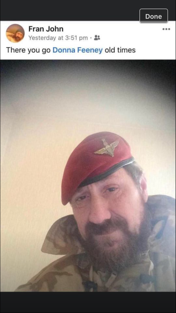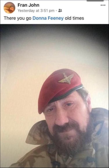 We exposed Fran 7 years ago after he was making claims of taking PTSD pills. Claiming to have been with 3 Para during the joy rider incident on their residential Belfast tour and may have fired the lethal shot.