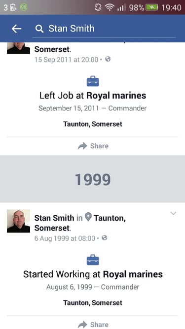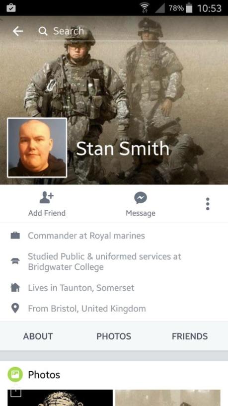 Claims to be a Commander in the Royal Marines and, trying to gain employment by posing as as an ex Royal Marine. They are Yanks on your profile Stan...